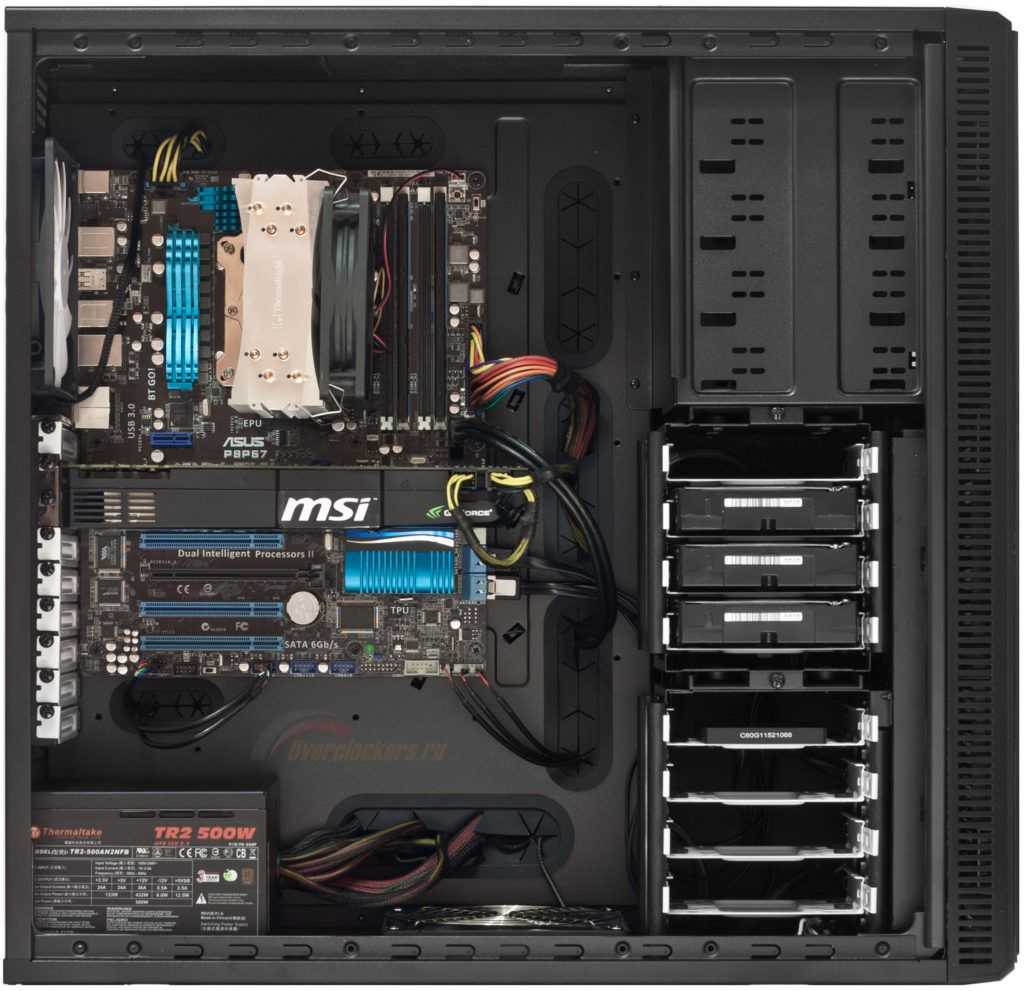 | ATX THERMALTAKE Core V71 TG | Весом почти 15 килограмм, предусмотрено два внешних отсека под дисководы 5,25″ и аж по восемь слотов для устройств 2,5″ и 3,5″ с безвинтовым креплением и съёмной корзиной. | ₽ 11 410 |