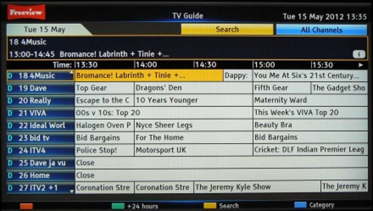 Most of the interface is simply presented as a series of flat lists of white text against a blue-ish background. The colour and animations are rudimentary. But a few touches have been added as it’s a premium set, including a neat page-turn effect when you change channels. It looks as if the channel you’re leaving curls up from the bottom-right corner of the screen to reveal the one you’re switching to. If you find it annoying you can switch it off in the main menu.