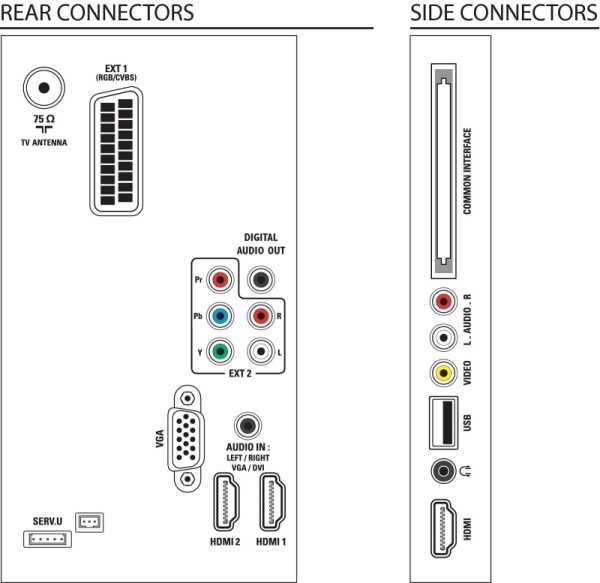 Вход для компьютера позволяет также использовать телевизор как монитор компьютера используя либо кабель/преобразователь HDMI-DVI (для цифрового сигнала), либо кабель VGA (для аналогового сигнала).