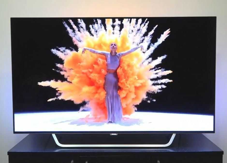 Акустическая система данной модели также поражает своими возможностями и необычным размещением. Звуковая панель находится в основании телевизора. Она является шестиканальной и выдает мощность звука 60 Вт. Фоновая подсветка Ambilight имеет дополнительную функцию: ее можно подстроить под цвет стены. Операционная система на платформе Android TV дает телевизору и его пользователю неограниченные возможности.