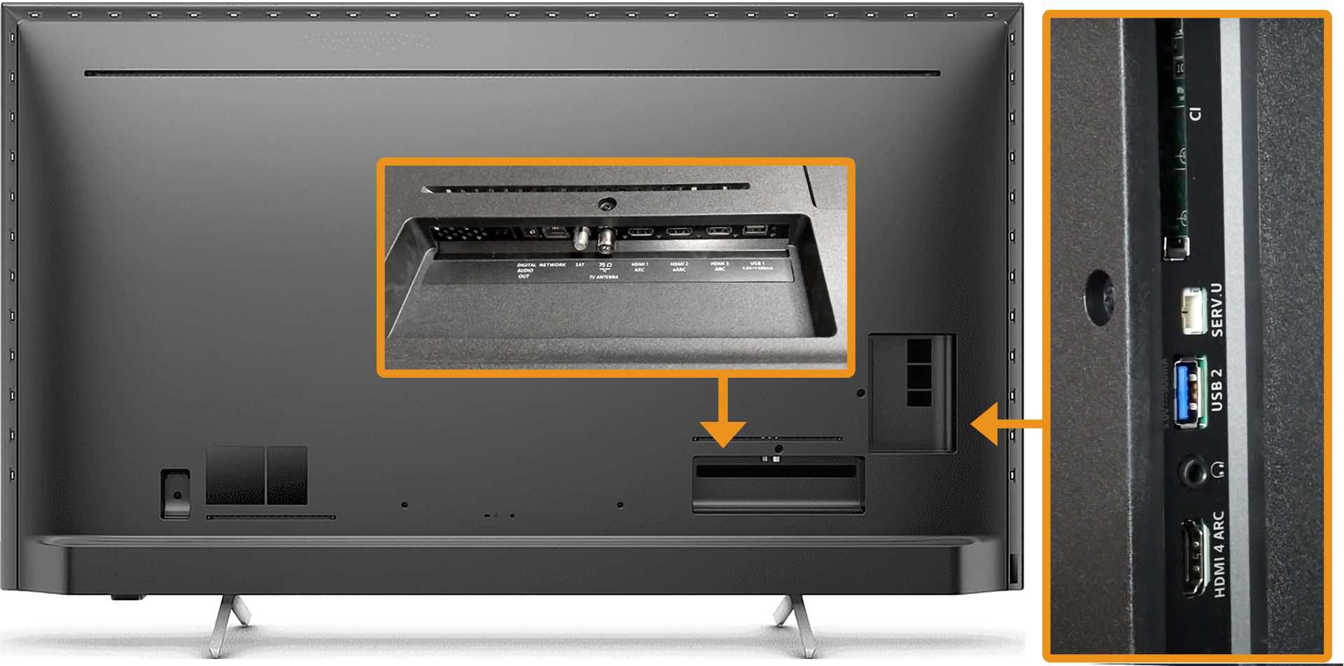 Exterior design and connectivity of the Philips 55PUS8602 / 12
