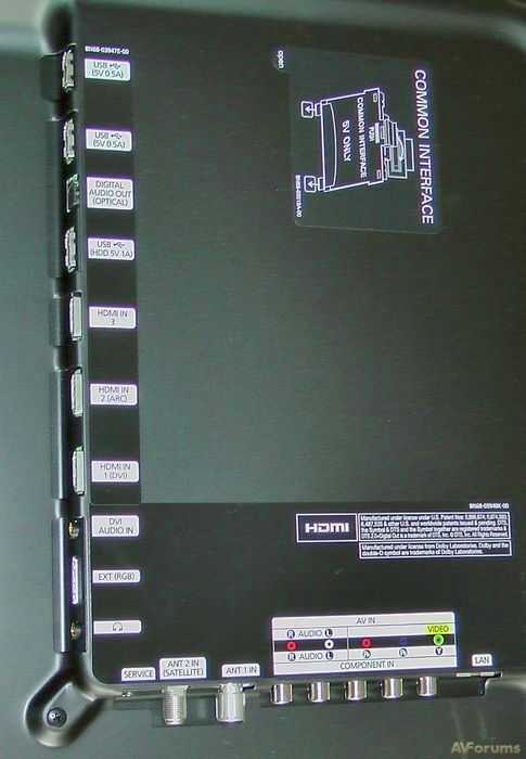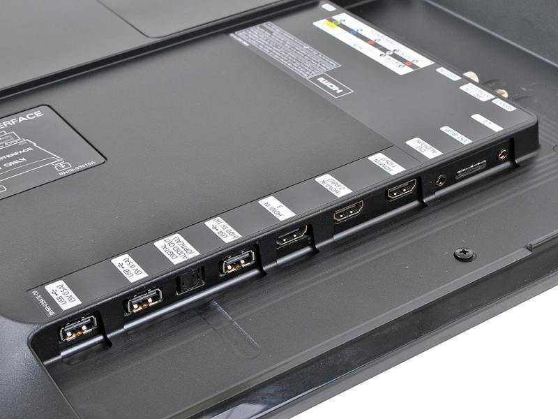 На задней панели устройства имеется множество вариантов подключения, позволяющих подключать приставки, игровые приставки и другие устройства. Все три входа HDMI соответствуют версии 1.4 и совместимы с источниками 3D. Компонентные и композитные видеовходы доступны для старых устройств, как и одна пара стереофонических аудиовходов, а также 3,5-мм аудиоразъемы для дополнительного входа и выхода для наушников. К сожалению, нет входа VGA. Единственный цифровой оптический аудиовыход удобен для более старых усилителей, в которых отсутствует HDMI-подключение.